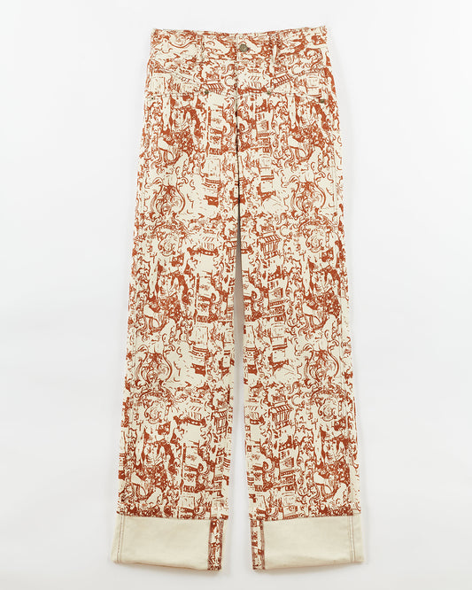 Nemy Trousers Organic Cotton Denim Printed Brown
