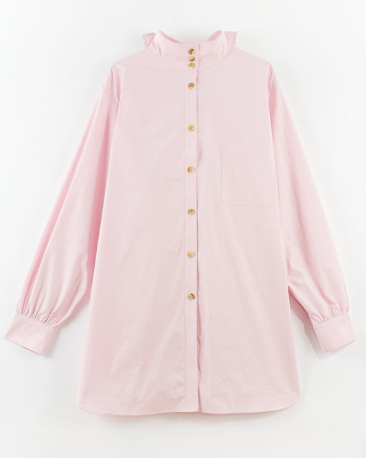 The Rejina Pyo Townes Shirt is a tunic-length top crafted from organic cotton with large cuffs at the wrist. It features a high collar that elegantly ties at the back, allowing you to adjust and loosen it to open the collar at the front for a versatile and customizable look. Designed in an oversized style, this shirt can be worn reversibly, offering multiple styling options and the freedom to experiment with different looks.